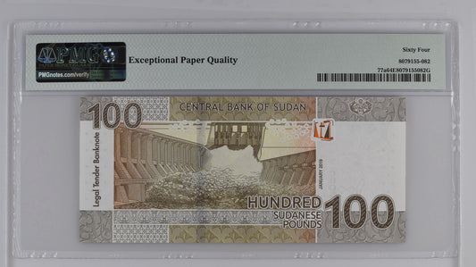 Sudan 1.2019 P-77a PMG Choice UNC 64 EPQ 100 Pounds