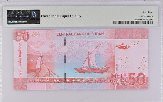 Sudan 4.2018 P-76 PMG Choice UNC 64 EPQ 50 Pounds