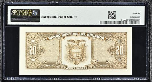 Ecuador - 20 Sucres 1986-88 - Pick # 121Aa - PMG 66 EPQ