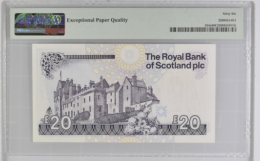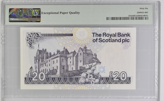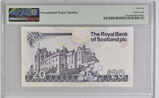 Scotland 20 Pounds 2010-12 LOW SERIAL NUMBER 514 P-354e PMG 66 EPQ