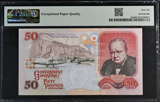 Gibraltar. 50 Pounds 2006 Elizabeth II P-34a Prefix AA PMG 66 EPQ