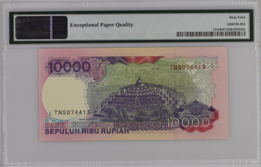 Indonesia 1992 / 1993 P-131b PMG Choice UNC 64 EPQ 10,000 Rupiah