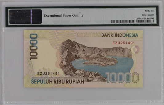 Indonesia 1998 / 2004 P-137g PMG Gem UNC 66 EPQ 10,000 Rupiah