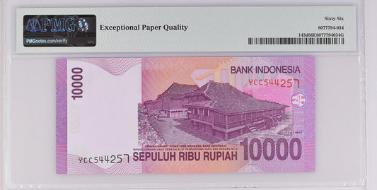 Indonesia 2005 / 2008 P-143d PMG Gem UNC 66 EPQ 10,000 Rupiah