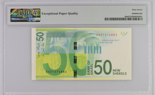 Israel 2014 / 5774 P-66b PMG Superb Gem UNC 67 EPQ 50 New Shekels
