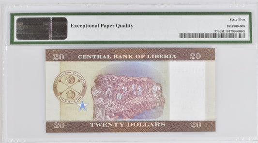 Liberia 2016 P-33a PMG Gem UNC 65 EPQ 20 Dollars
