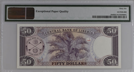 Liberia 2009 P-29d PMG Gem UNC 66 EPQ 50 Dollars