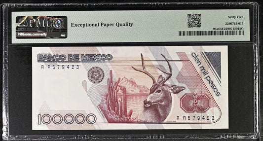 Mexico 4.1.1988 P-94a PMG Gem UNC 65 EPQ 100,000 Pesos