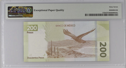 Mexico 30.1.2019 P-132b PMG Superb Gem UNC 67 EPQ 200 Pesos