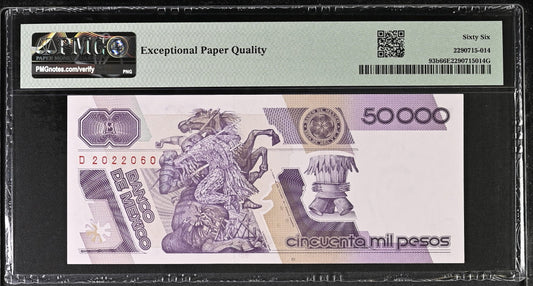 Mexico 20.12.1990 P-93b PMG Gem UNC 66 EPQ 50,000 Pesos