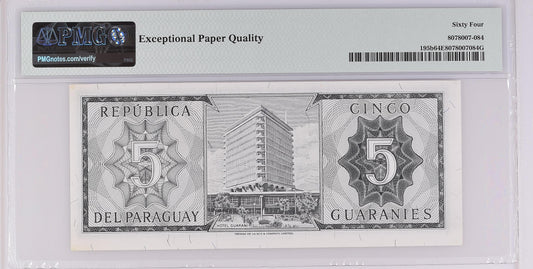 Paraguay 1952 (ND 1963) P-195b PMG Choice UNC 64 EPQ 5 Guaranies