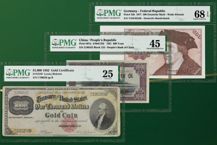En Iberoamericana Banknotes, seleccionamos solo ejemplares auténticos y en óptimas condiciones, muchos graduados PMG para garantizar su calidad.