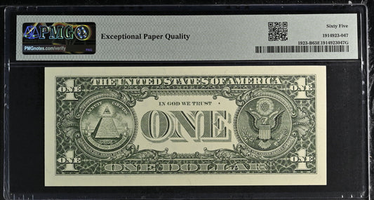 United States of America. 1 Dollar 1995 Fr# 1923-B WEB Note PMG 65 EPQ